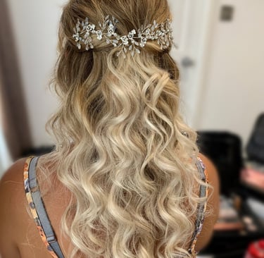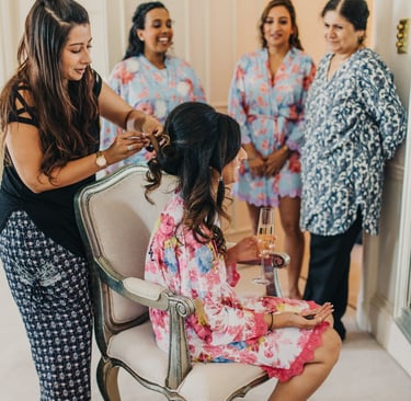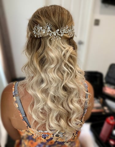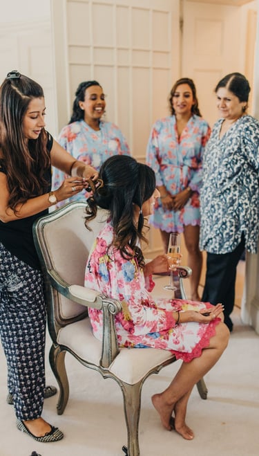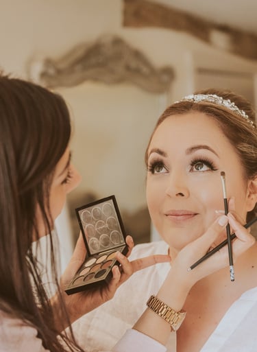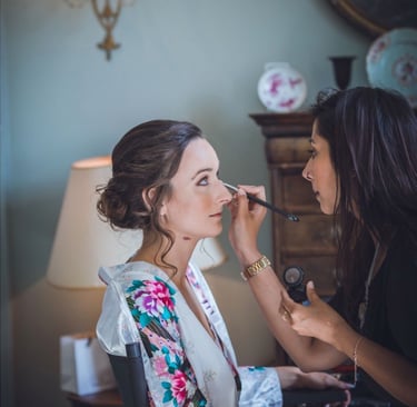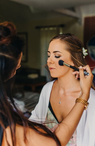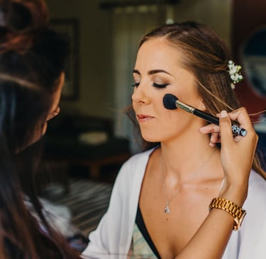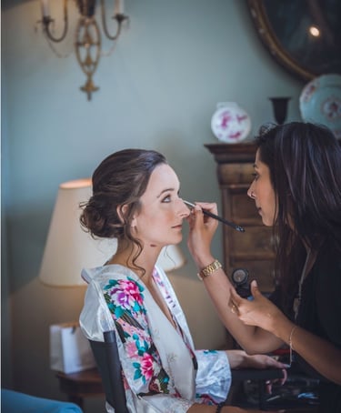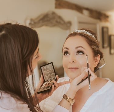 On the wedding day, I'll arrive at the chosen location at least 10 minutes before the start time to set up in the allocated area, ready to begin the glam. The bride/wedded to be, is always the main priority, depending on their booked services they are usually allocated somewhere in the middle of the schedule so that there is no rushing, my priority is that they fully relax and enjoy their morning. Each person will sit in my makeup high chair or lower down for hair styling at their allocated time and sit back while I work my magic. Once all services are completed I will then start applying touch-ups, the bride/wedded to be, is the final person to receive important finishing touches before I pack up to leave. 10 minutes is required as a minimum at the end of the booking for packing away. I will check in with the bride before my departure, ensuring everyone is happy and possibly take a cheeky photo or two (with permission), my second favourite bit!